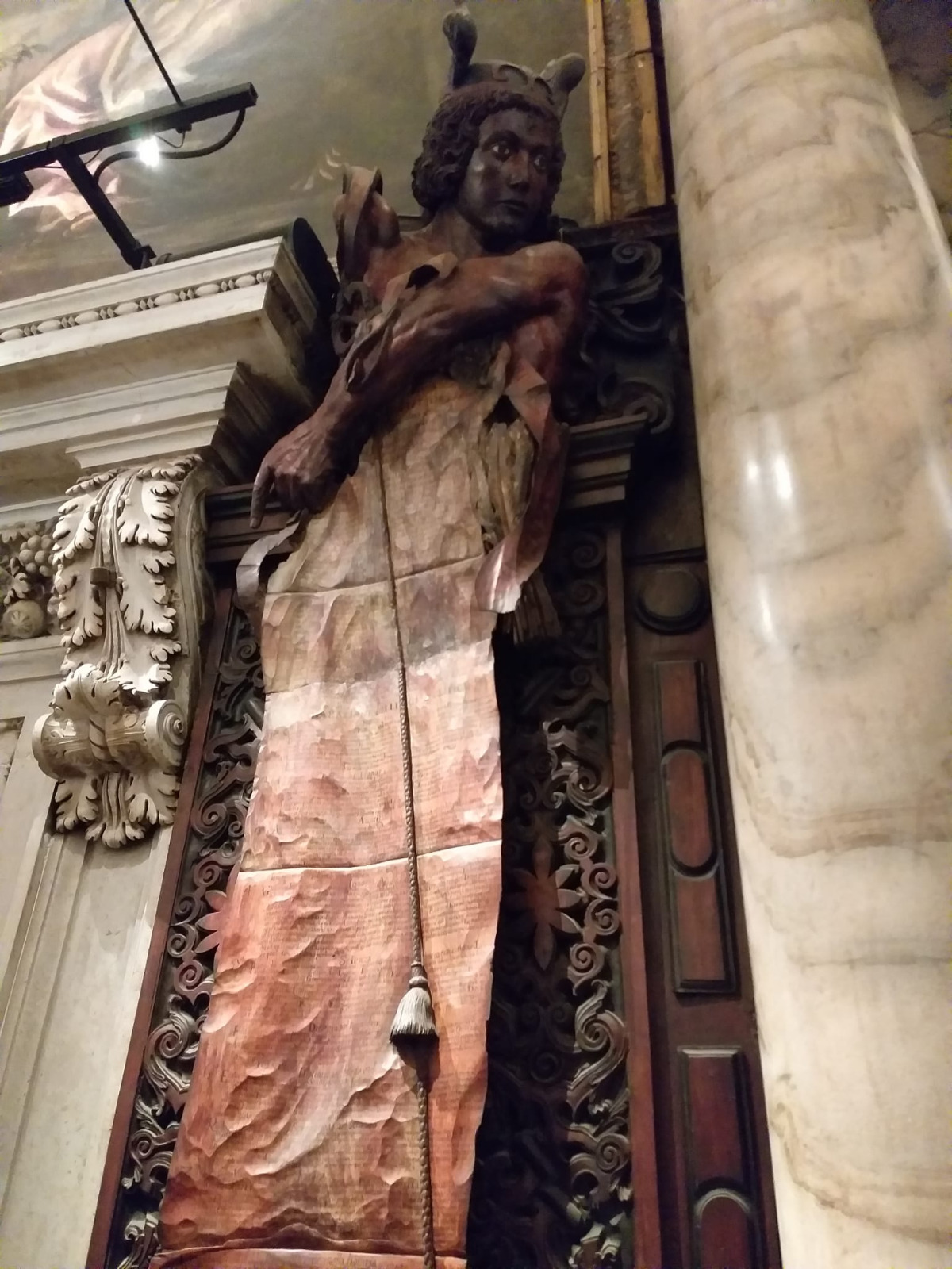 Se ad Andrea Brustolon ((Belluno, 1662 – Belluno 1732) i posteri gli hanno riconosciuto il titolo onorifico di "Michelangelo del legno", certamente signifca che hanno ravvisato nelle sue sculture una potenza espressiva tale da paragonarlo al più grande scultore di tutti i tempi. E in effetti quando si è in presenza delle sue sculture lignee certo non si resta indifferenti, dati il forte impatto visivo ed emotivo, la raffinatezza dell'esecuzione, la genialità con cui è trattata la materia, la bellezza che scaturisce da forme studiate in ogni dettaglio con un'anicribìa che rende le sue opere veramente uniche. La viva materia del legno ubbidisce alle sue abilissime mani, assumendo le forme più svariate e ricercate, siano esse di ebano o di cirmolo, una volta partotrite dal suo genio si animano di vita propria e sembrano palpitare, tanto sono eseguite abilmente e con tangibile trasporto artistico e sentimentale. E angeliche ali sembrano librarsi in un volo divino, e muscoli virili sembrano tesi in uno sforzo impossibile, e volti maschili e femminili, adulti o infantili, assumono ora pose rilassate, serafiche, sorridenti, ora smorfie dolorose, turbate, contratte. La lezione barocca qui raggiunge livelli elevati ed estenuati in arzigogoli che tendono a una meraviglia tutta da ammirare.