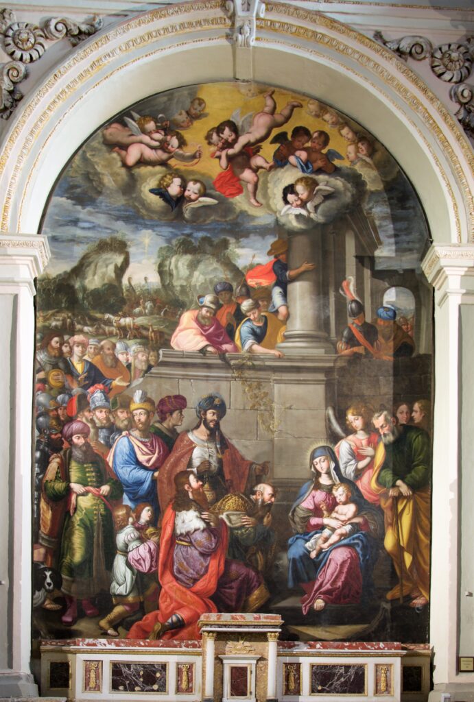 Ritornando alle opere custodite all’interno del Duomo di Enna, è possibile notare come oltre alle pale del Paladini e a quelle del primo Settecento firmate dal fiammingo Guglielmo Borremans, ve ne siano altre molto pregevoli che si fanno risalire al nisseno Vincenzo Roggeri (o Roggieri, o Ruggieri). Di quest’ultimo poche e molto scarse sembrano essere le notizie biografiche, tanto che si è insicuri anche sul cognome dello stesso, anche se certa sembra essere la sua provenienza dalla città di Caltanissetta, così come riferito anche dal suo monogramma riportato nell’angolo in basso a destra dell’”Adorazione dei Magi” nel Duomo di Enna, dove oltre alle iniziali “VR” troviamo le lettere “CAL”, che riconducono quasi inequivocabilmente alla provenienza nissena del pittore.